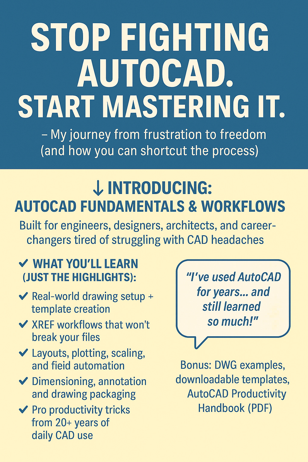 If you’re enjoying these tips and want to go deeper, check out my AutoCAD Fundamentals & Workflows course. It’s packed with the real-world systems I use every day: templates, plotting, layout workflows, title blocks, and more.